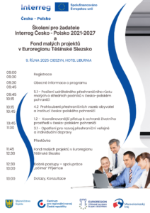 Prezenční školení pro žadatele v rámci Operačního programu Interreg Česká republika – Polsko 2021 – 2027 a žadatele do Fondu malých projektů (SPF) Interreg Česká republika – Polsko, který je realizován v Euroregionu Těšínské Slezsko, proběhne dne 9. října 2025 se v polském Těšíně v hotelu „Liburnia“. Školení pořádají Regionální kontaktní místa Programu (Slezské vojvodství a Moravskoslezský kraj), Sdružení pro regionální rozvoj  a spolupráci „Olza“ (Euroregion Těšínské Slezsko) a Společný sekretariát v Olomouci.